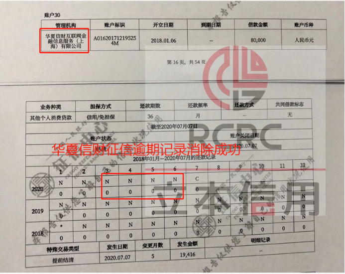 截止2021年2月底,北京立本美好信用有限公司(可百度該公司)已經(jīng)為1200位華夏信財(cái)?shù)慕杩钊诵迯?fù)了征信,消除了征信不良記錄,同時(shí)也通過協(xié)商還款減免了高額逾期費(fèi)用,為借款人開啟新生活掃清了征信污點(diǎn)。