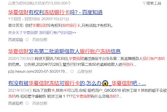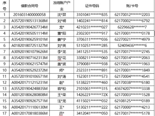 華夏信財凍結(jié)借款人銀行卡名單