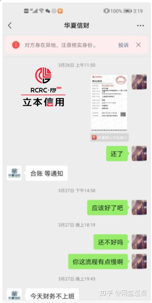 有的借款人向北京立本美好信用有限公司訴說:我的儲蓄卡被上海市公安局偵查大隊凍結(jié)了,大概是因為華夏信財借款的原因,當初這個款我是一直在還的,可是突然一次還款他們沒扣,后 來接到電話讓轉(zhuǎn)入其他對公賬戶,我怕受騙上當,就一直沒還。