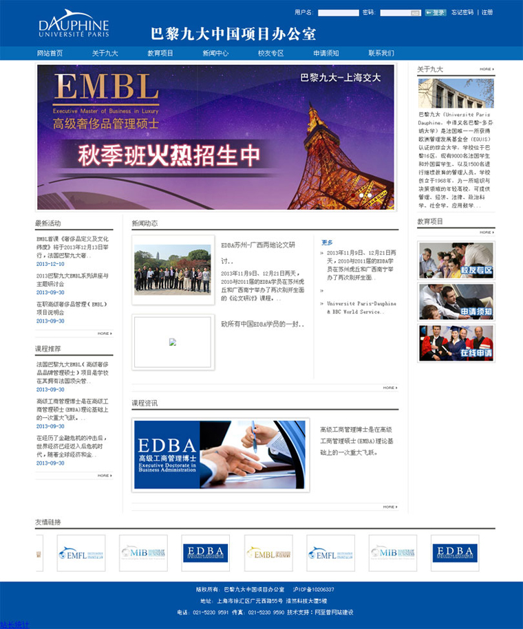 巴黎九大(Université Paris Dauphine,中譯又名巴黎-多芬納大學)是法國唯一一所獲得歐洲管理發(fā)展基金會(EQUIS)認證的綜合大學,學校位于巴黎16區(qū),現(xiàn)有9000名法國學生和外國留學生、以及1500名進行繼續(xù)教育的管理人員。