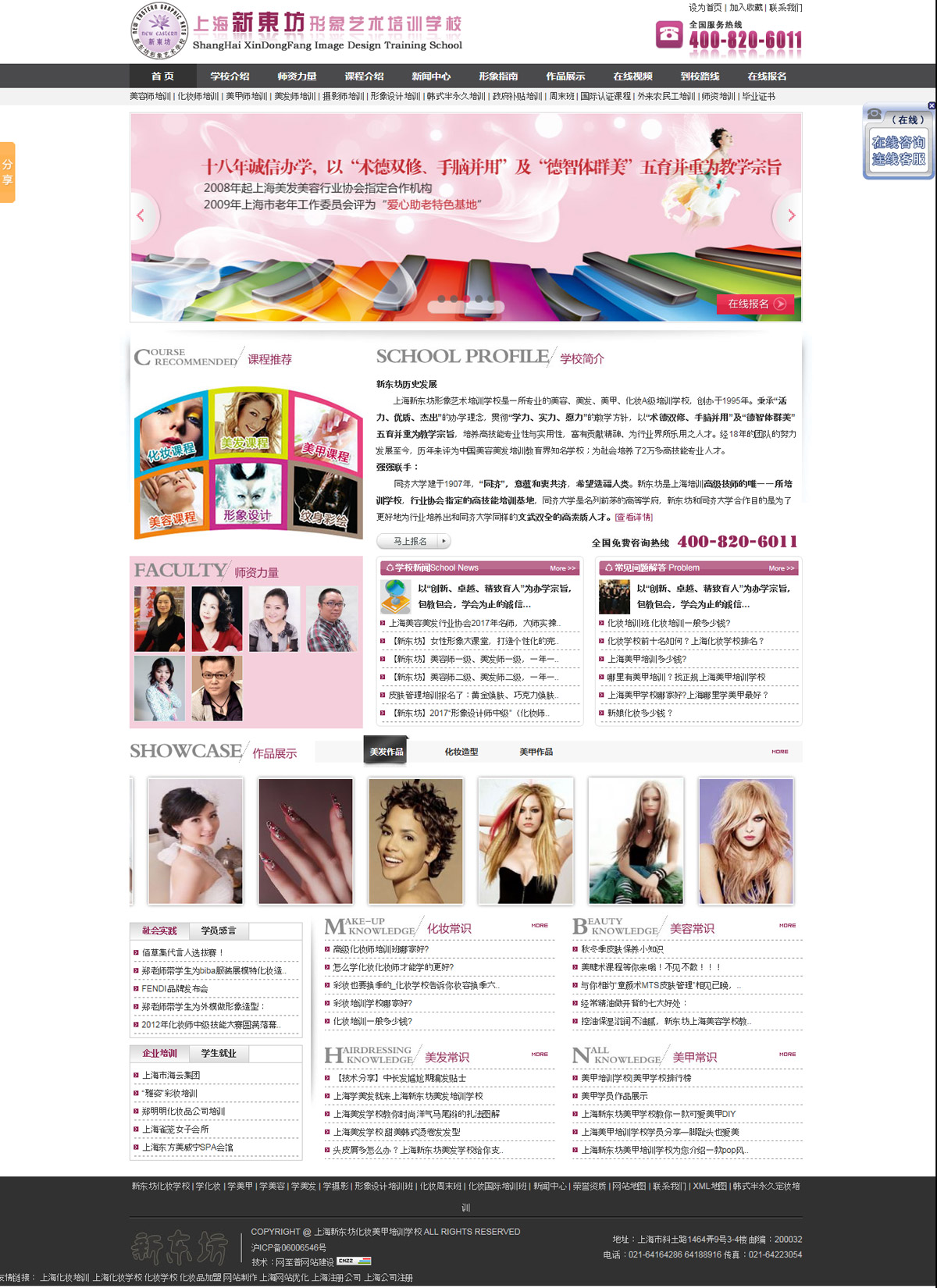 上海新東坊形象藝術(shù)培訓(xùn)學(xué)校是一所專業(yè)的美容、美發(fā)、美甲、化妝培訓(xùn)學(xué)校,創(chuàng)辦于1995年。秉承“活力、優(yōu)質(zhì)、杰出”的辦學(xué)理念,貫徹“學(xué)力、實(shí)力、愿力”的教學(xué)方針,以“術(shù)德雙修、手腦并用”及“德智體群美”五育并重為教學(xué)宗旨,培養(yǎng)高技能專業(yè)性與實(shí)用性,富有貢獻(xiàn)精神、為行業(yè)界所樂(lè)用之人才。經(jīng)18年的團(tuán)隊(duì)的努力發(fā)展至今,歷年來(lái)已成為中國(guó)美容美發(fā)培訓(xùn)教育界優(yōu)秀學(xué)校。自創(chuàng)辦以來(lái)吸引了全國(guó)及香港特區(qū)、臺(tái)灣地區(qū)以及日本、韓國(guó)、新加坡、澳大利亞、新西蘭、挪威等各國(guó)的莘莘學(xué)子前來(lái)就學(xué)。學(xué)校本著以人為本的多元化教學(xué)模式,為社會(huì)培養(yǎng)了一批又一批的專業(yè)人才,也為社會(huì)的再就業(yè)工程做出了奉獻(xiàn),深受社會(huì)各界的好評(píng)。